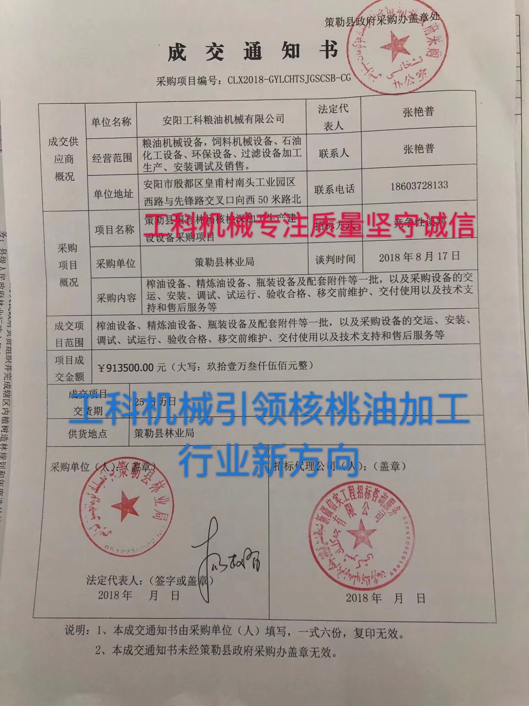 安陽(yáng)工科糧油機(jī)械致力于核桃油產(chǎn)業(yè)發(fā)展新方向,為新疆人民脫貧致富貢獻(xiàn)力量,感謝業(yè)主方策勒林業(yè)局和核桃行業(yè)專家委員會(huì)對(duì)我們工科的認(rèn)可與信任,工科一定牢記習(xí)總書記的囑咐,扶貧攻堅(jiān)工科在行動(dòng)。